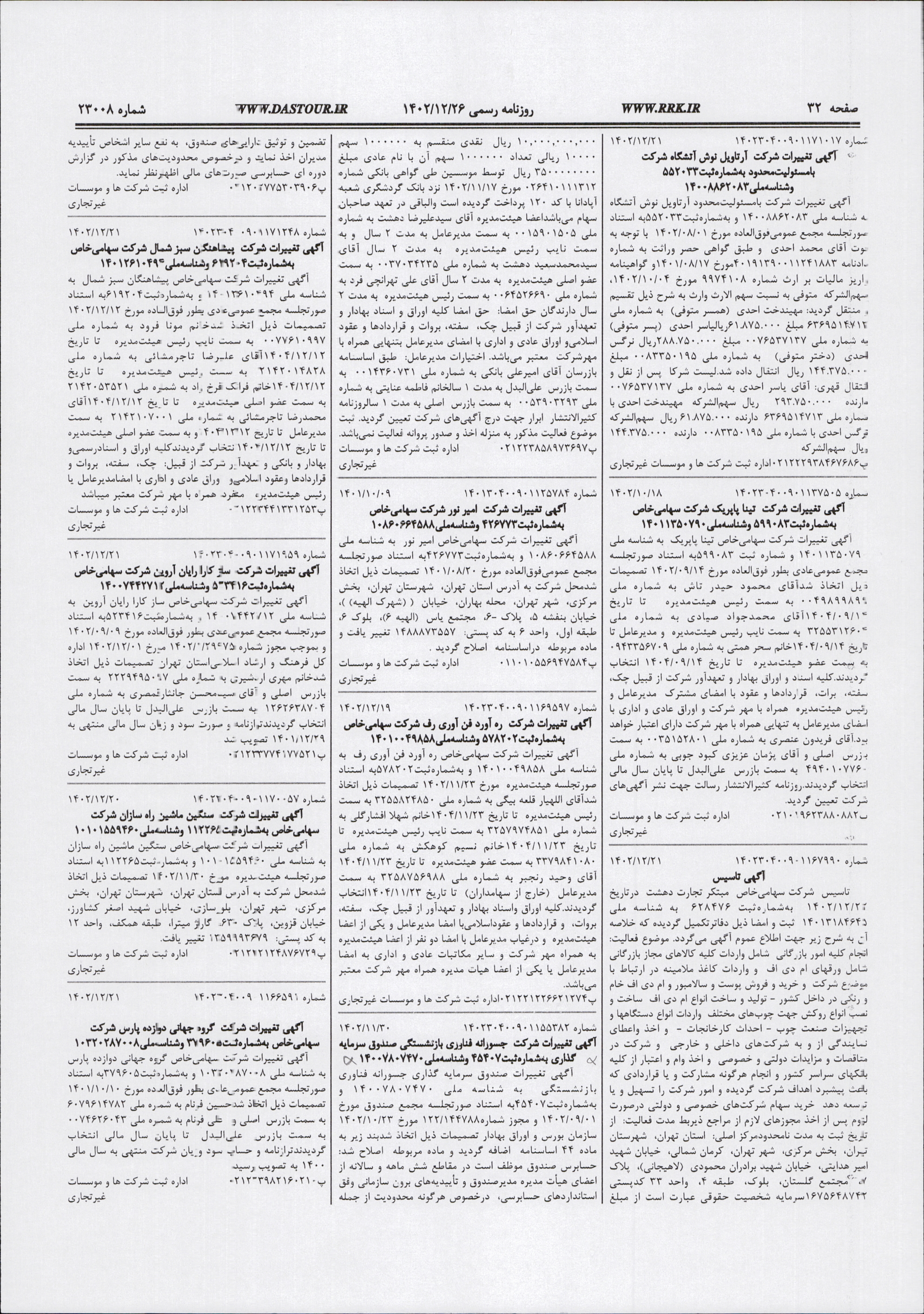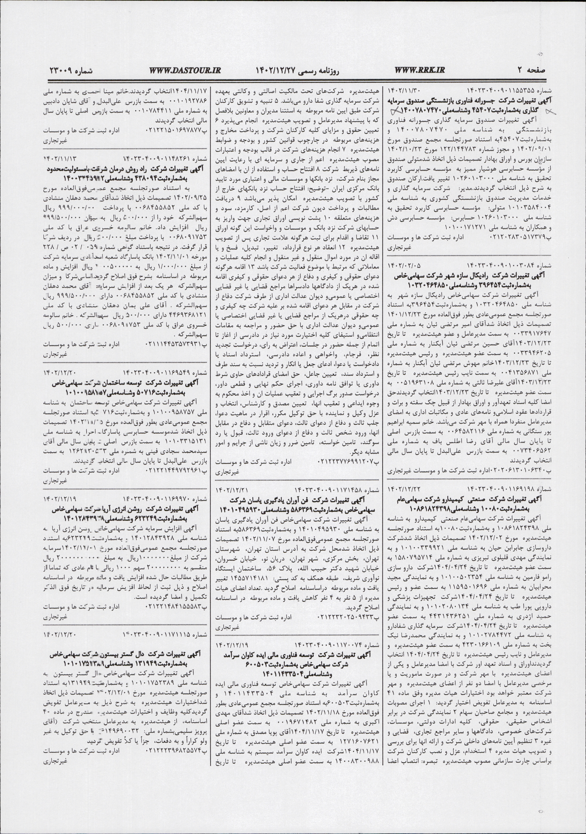 روزنامه رسمی مجمع 01-09-1402 (ساعت 9:30 صبح) صندوق سرمایه گذاری جسورانه فناوری بازنشستگی